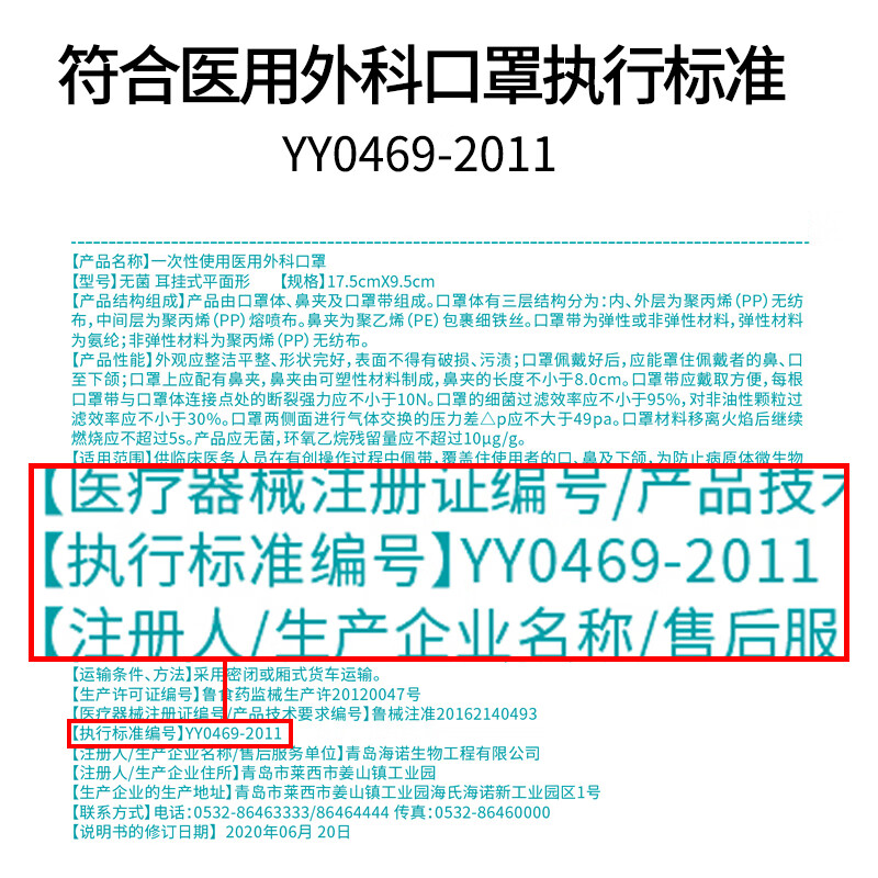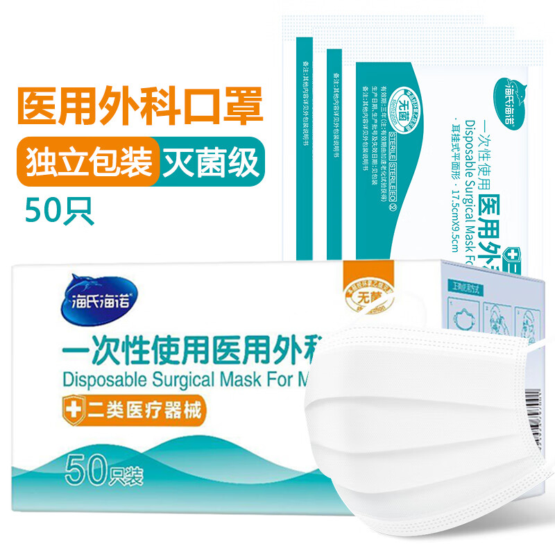 商品名称:海氏海诺 医用外科无菌口罩白色50只独立包装 三层灭菌口罩医用夏季透气防尘防花粉(二类医疗器械)