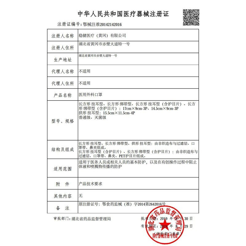 • 注册人或者备案人信息:稳健医疗(黄冈)有限公司