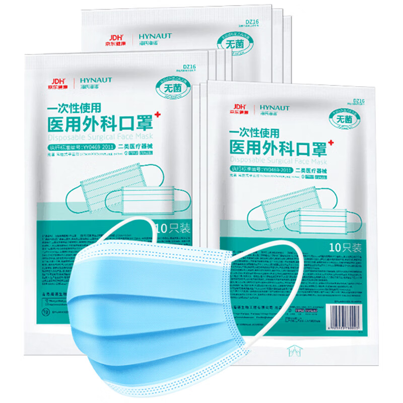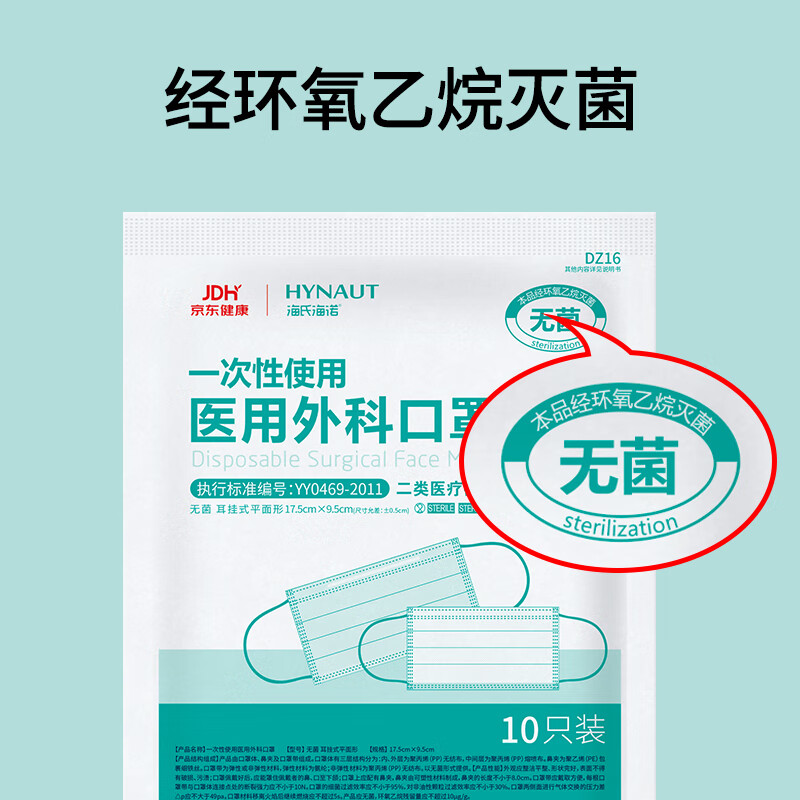 商品名称:海氏海诺 一次性使用医用外科口罩100只 无菌三层平面型防尘成人口罩医用面罩 灭菌级10只*10袋