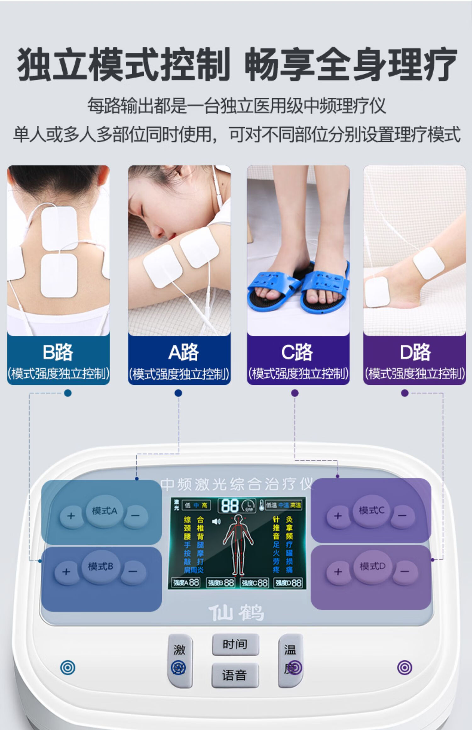 商品名称:仙鹤二类医疗器械脉冲治疗仪 中频脉冲电疗治疗仪机家用颈椎病疏通軛閼 红色