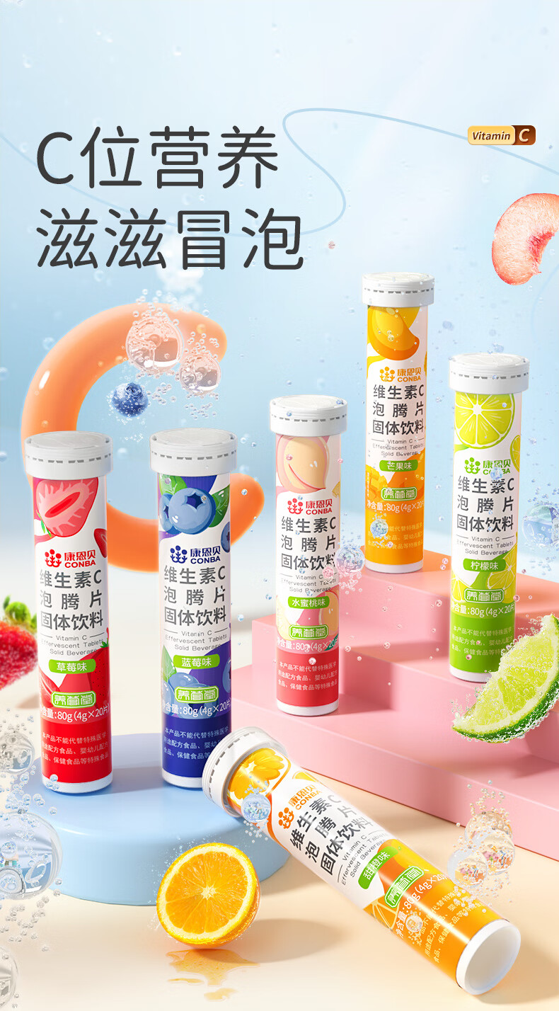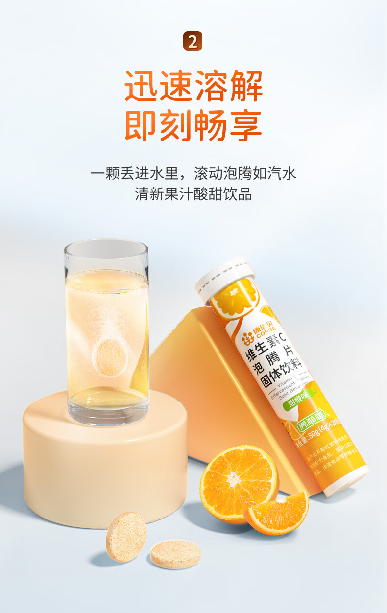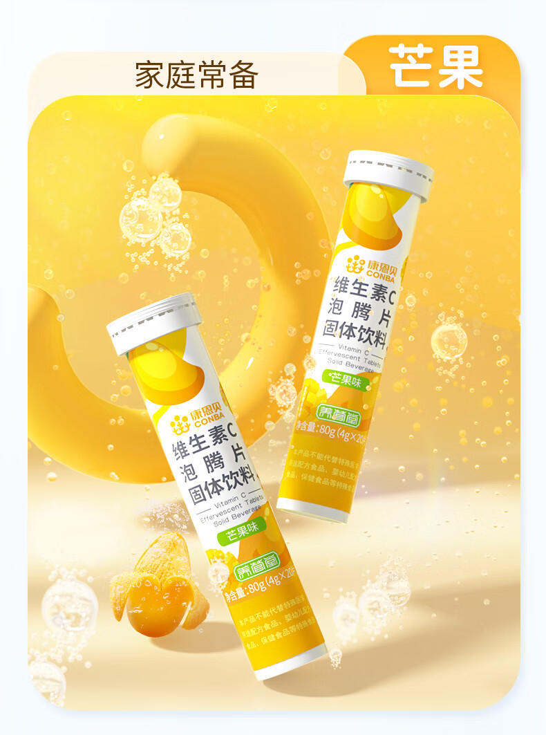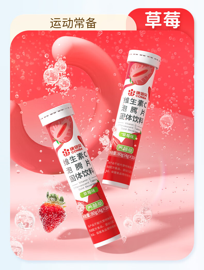 商品名称:康恩贝 维生素c泡腾片 固体饮料果味维c泡腾片VC草莓味 20片