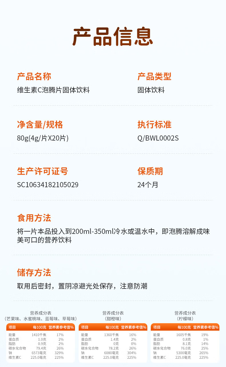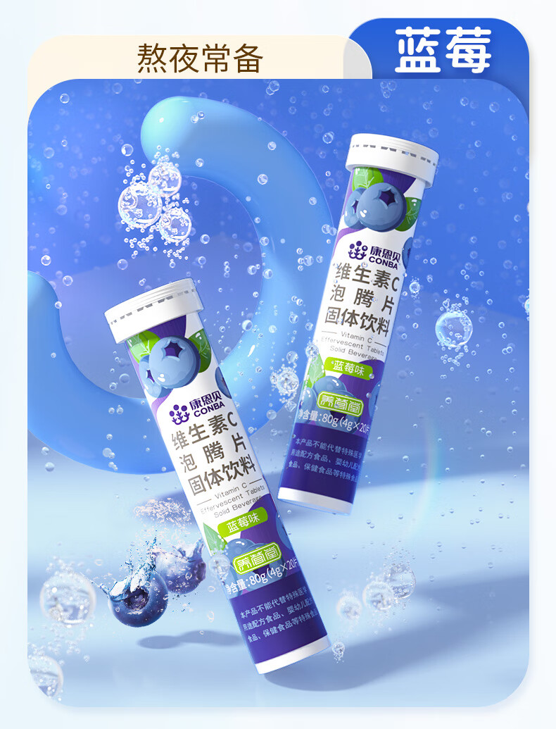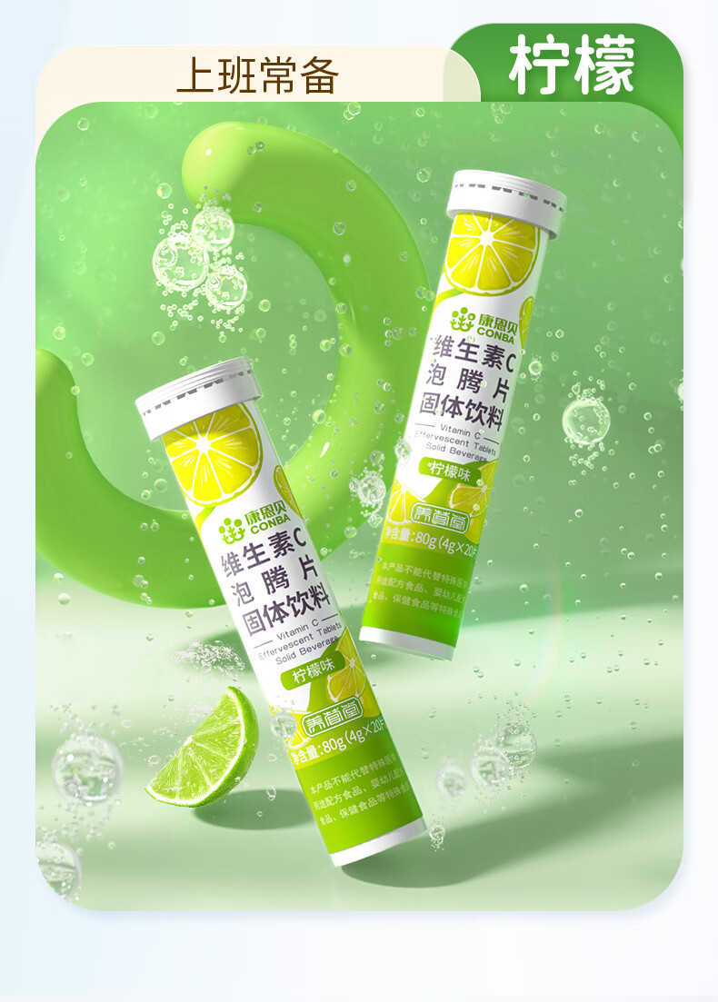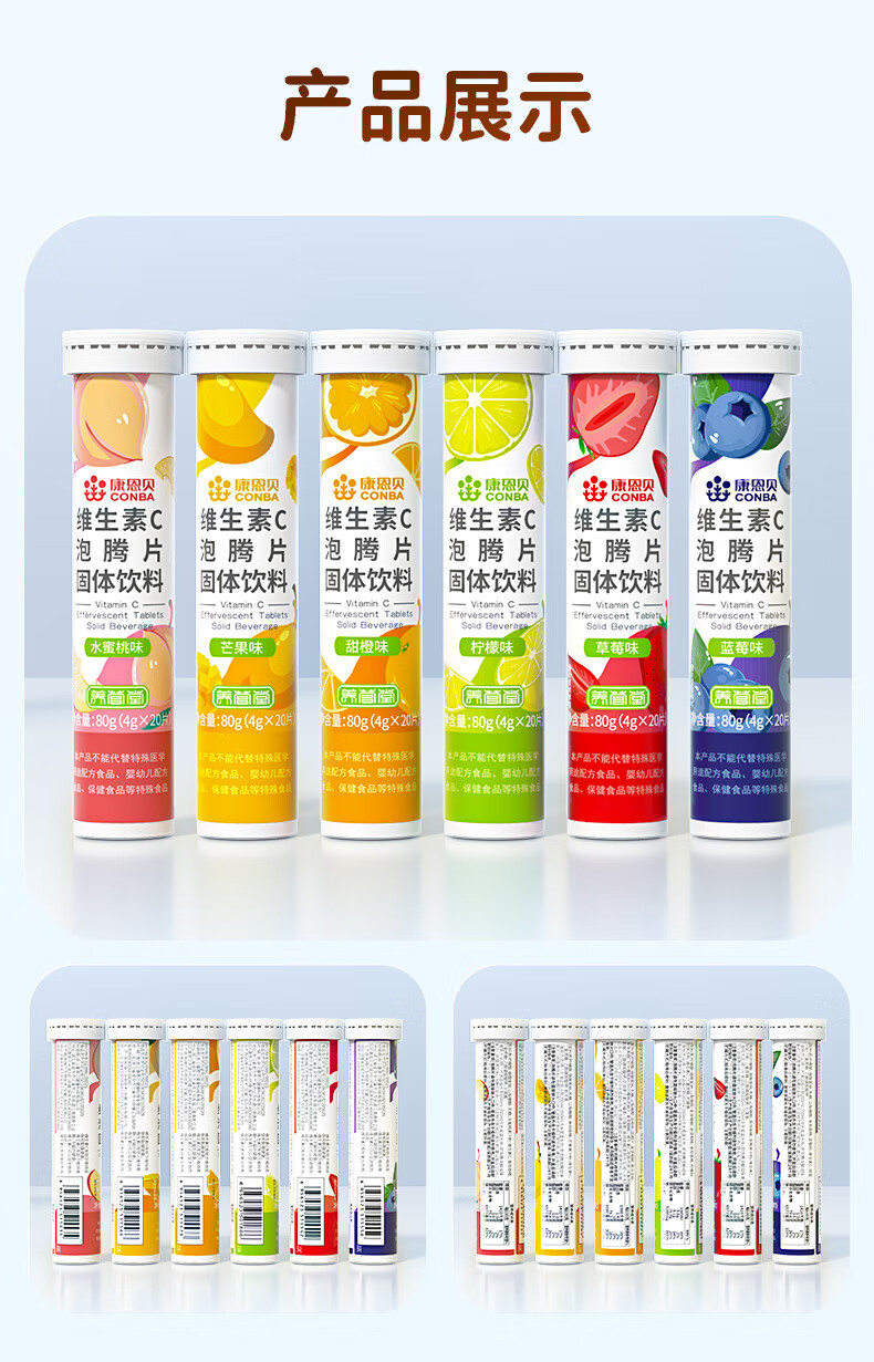 商品名称:康恩贝 维生素c泡腾片 固体饮料果味维c泡腾片VC草莓味 20片