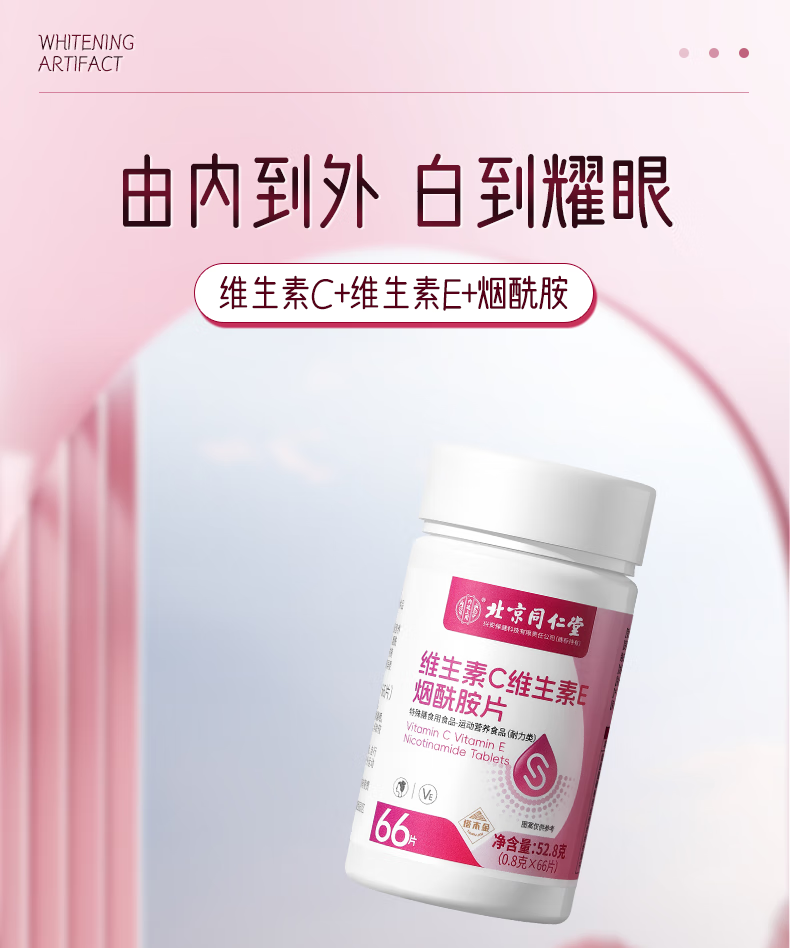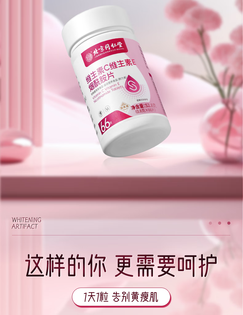 商品名称:同仁堂 北京同仁堂烟酰胺维生素c维生素e66片*3瓶 复合维生素女士女性成人儿童青少年男士vc片