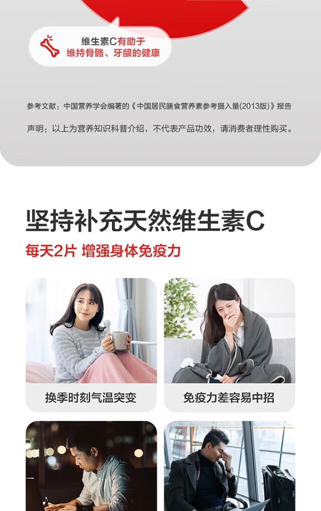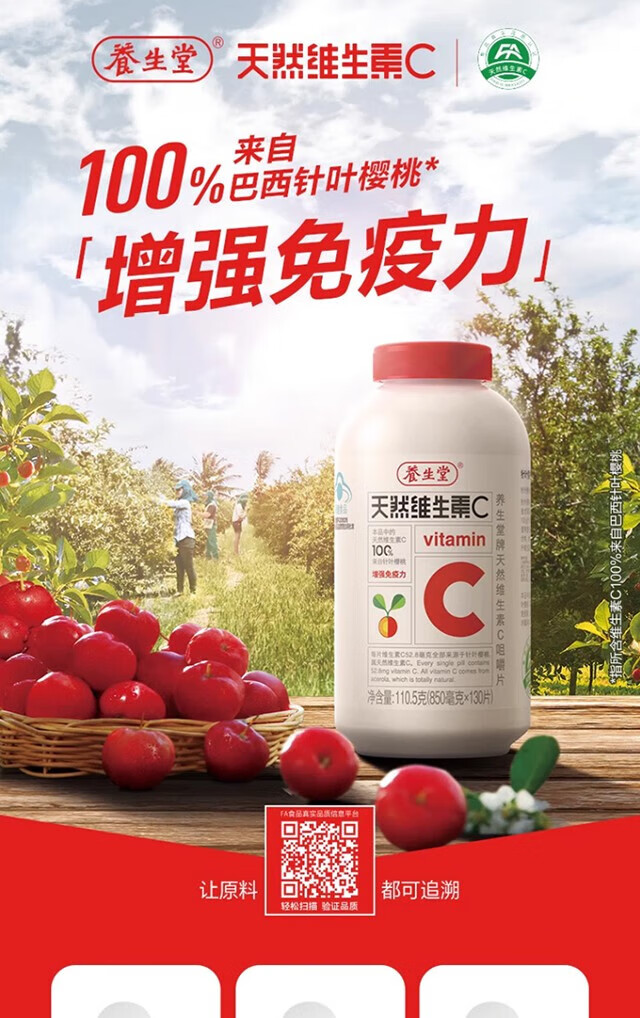 养生堂天然维生素C增强免疫力VC片咀嚼片针叶樱桃维C片 130片/1盒装