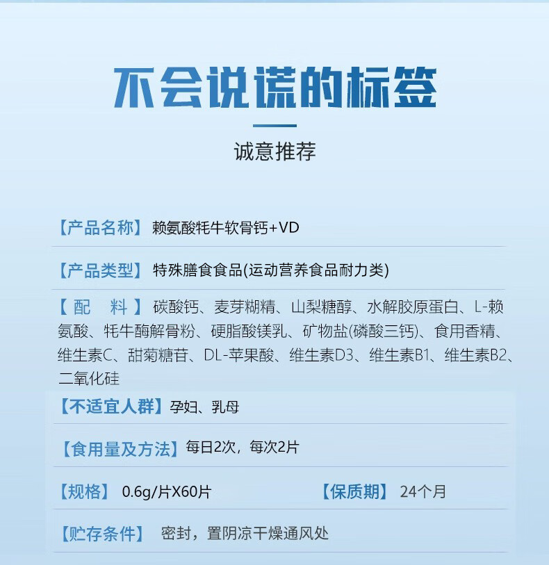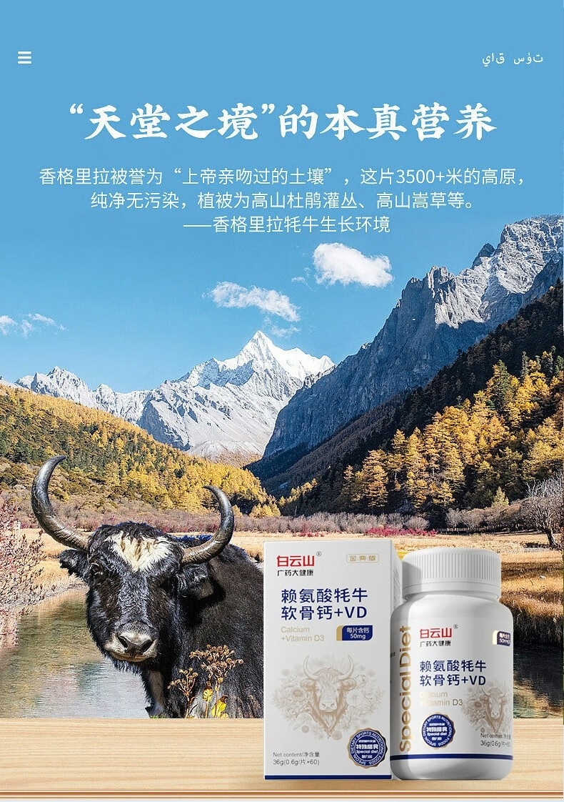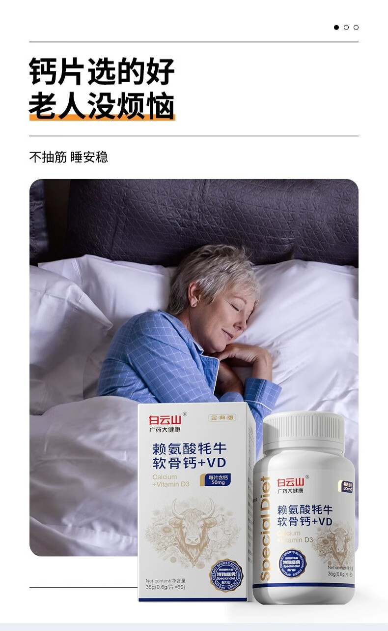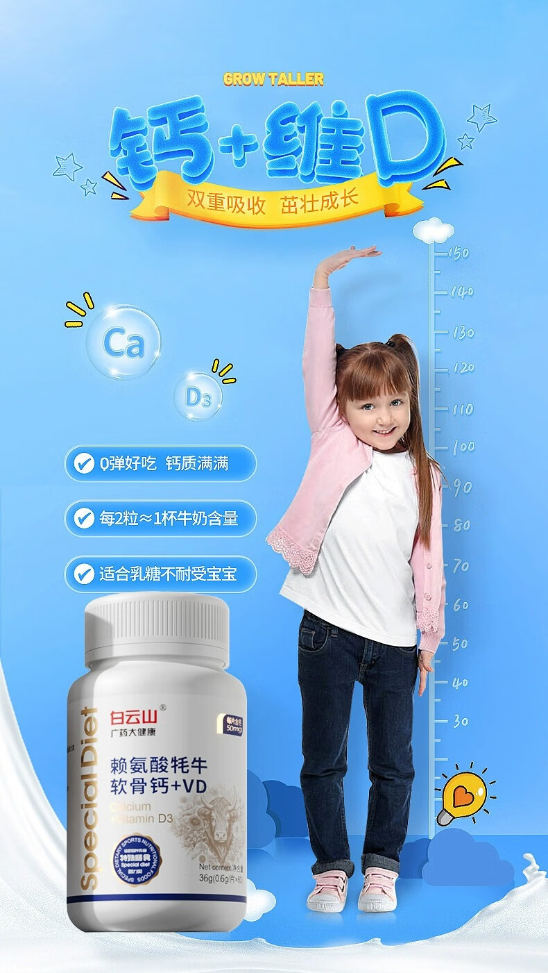 商品名称:白云山 赖氨酸牦牛软骨钙+VD钙片 成人儿童钙片6-13岁11岁维生素d 4-17岁 高钙青少年成长钙片中老年180粒