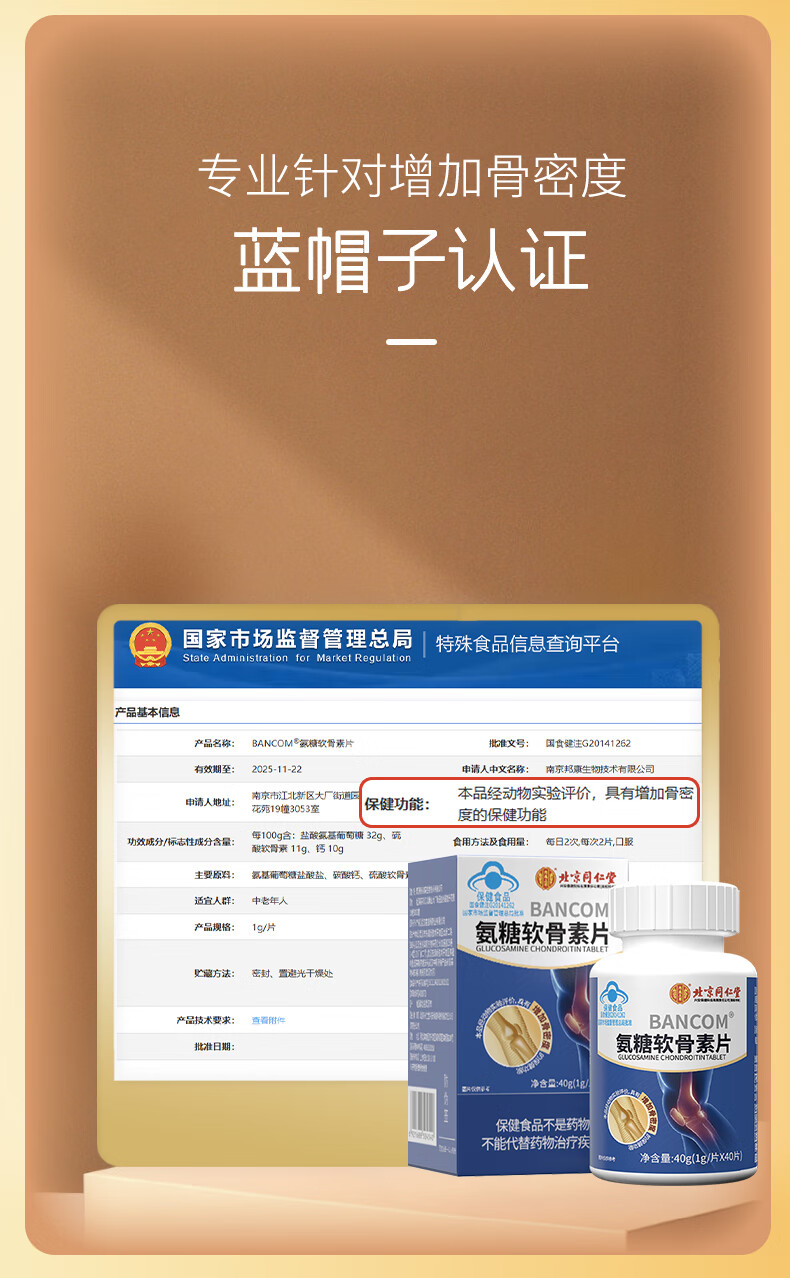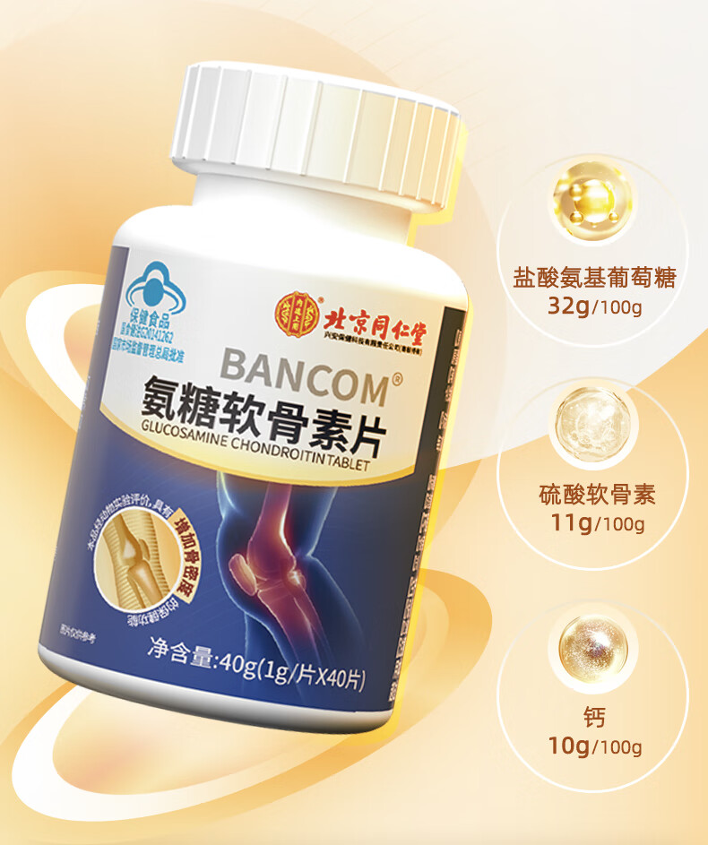 北京同仁堂 内廷上用 氨糖软骨素钙片1盒40片保健品增加骨密度重塑关节健康补钙膝盖腰肩肘椎送父母送长辈