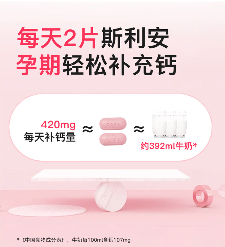 斯利安 孕妇钙片哺乳期补钙孕中期孕晚期孕早孕期专用营养 96片