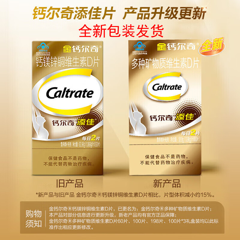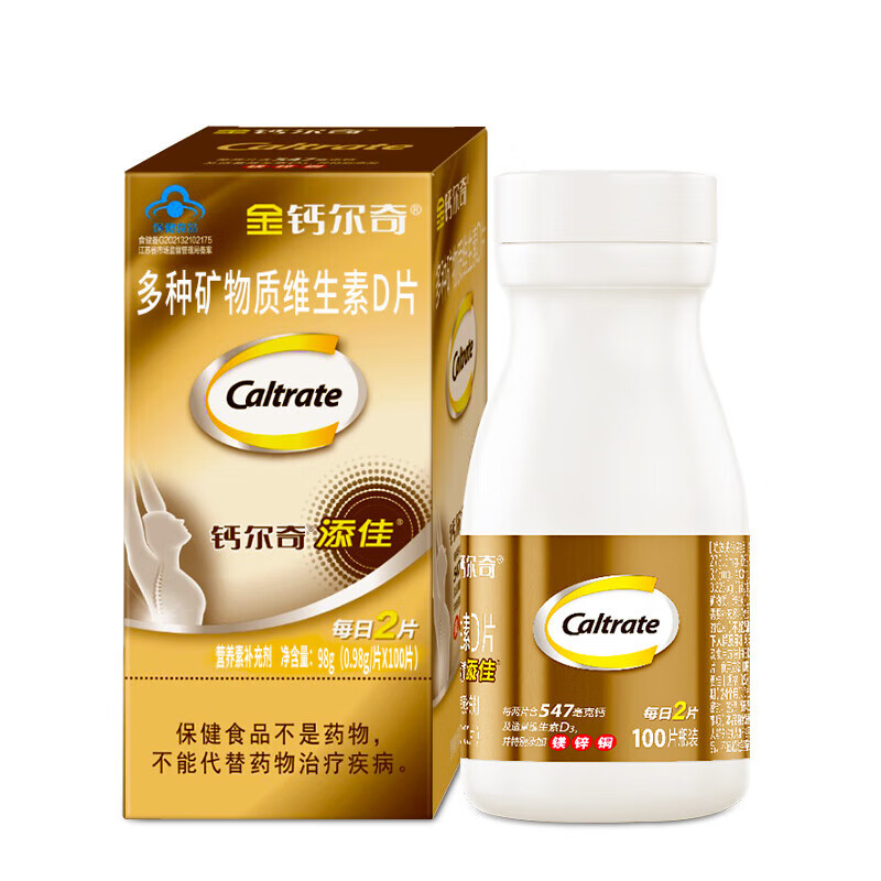钙尔奇 多种矿物质维生素D片添佳片补钙片 100片/盒男女中老年成人维生素D3碳酸钙片补充钙镁锌铜 1盒【100片】