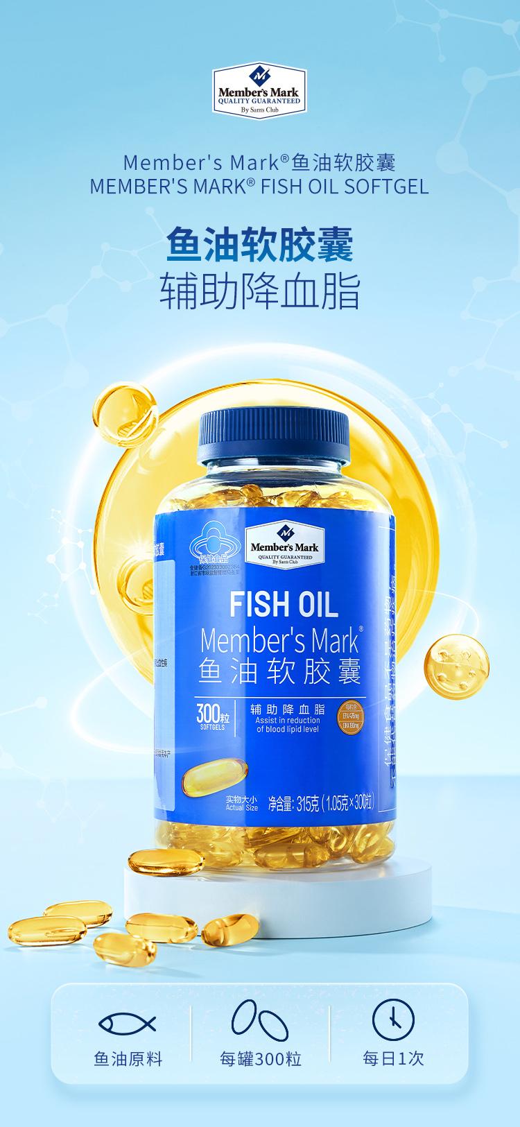 Members Mark 鱼油软胶囊 315g(1.05g*300粒) -