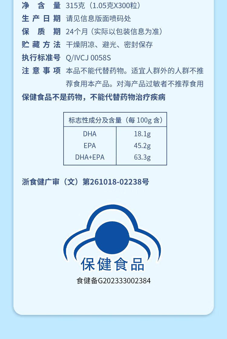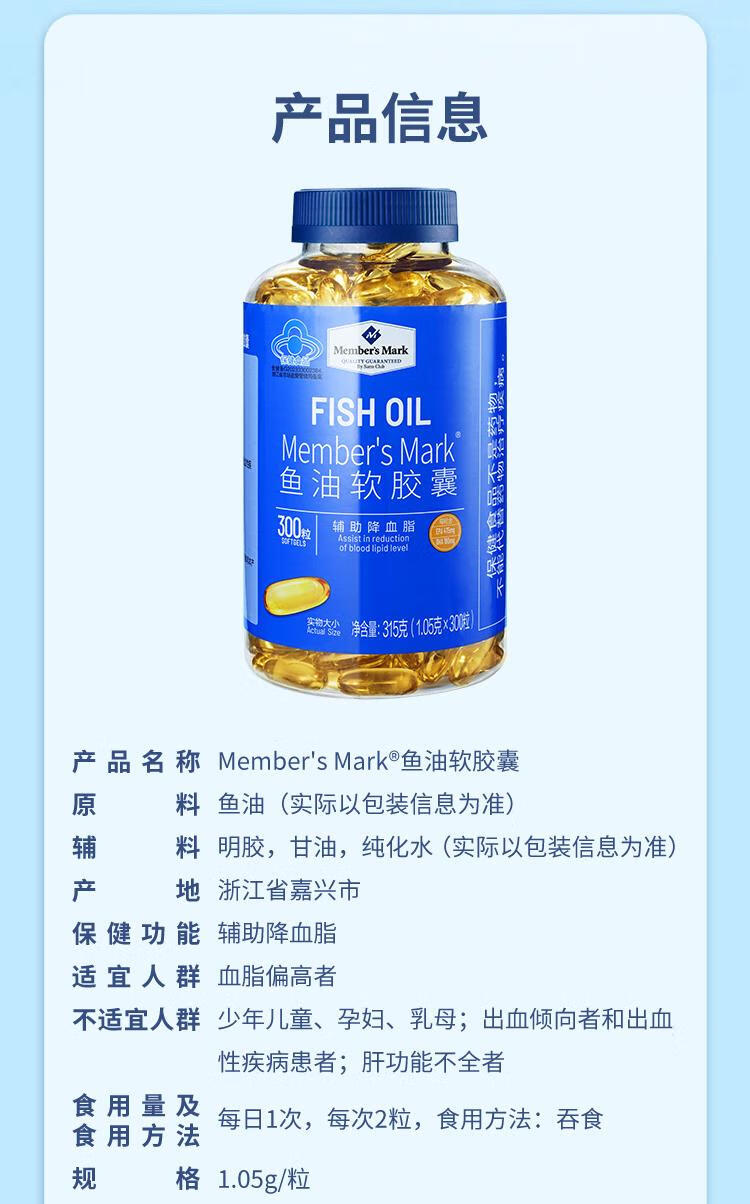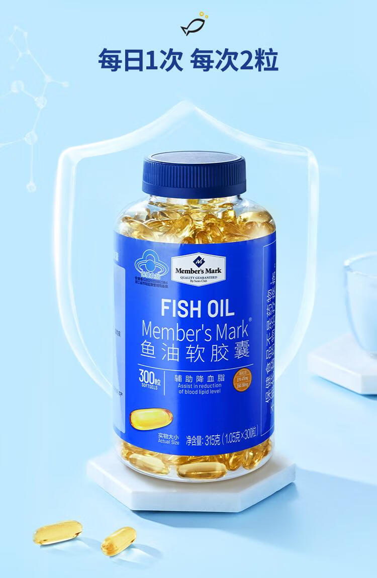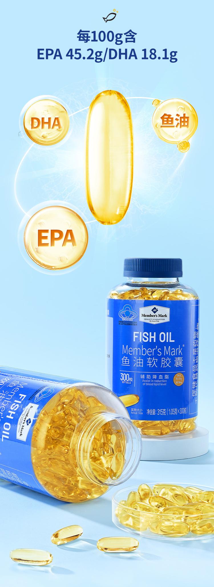 商品名称:Members Mark 鱼油软胶囊 315g(1.05g*300粒) -