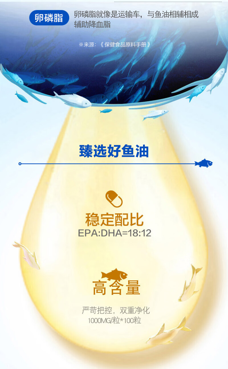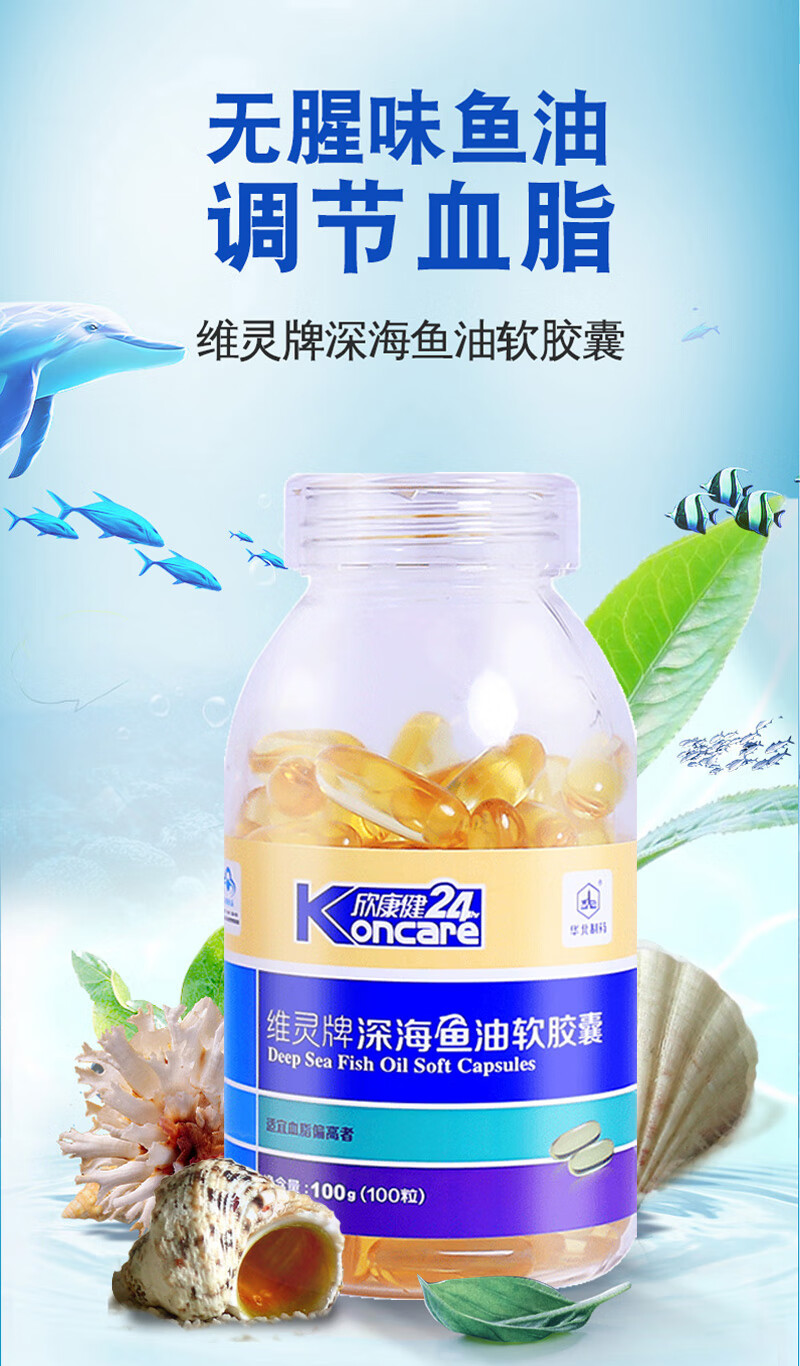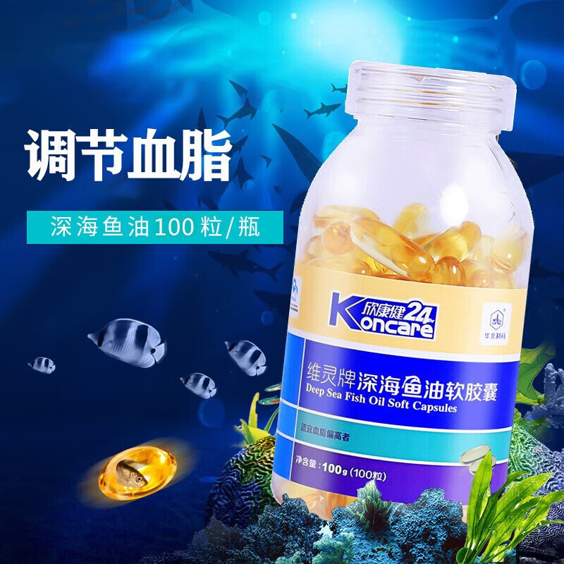 商品名称:深海鱼油软胶囊100粒/瓶 鱼油成人中老年人辅助降血脂保健品