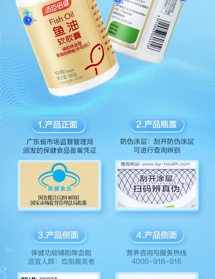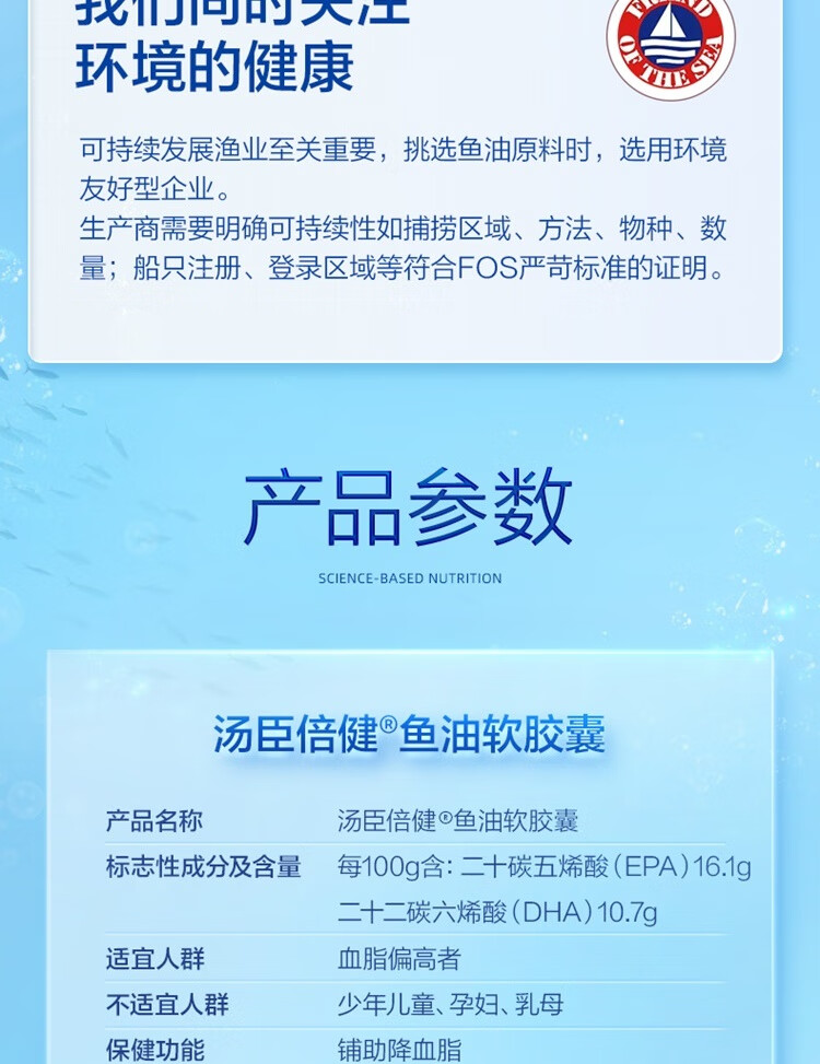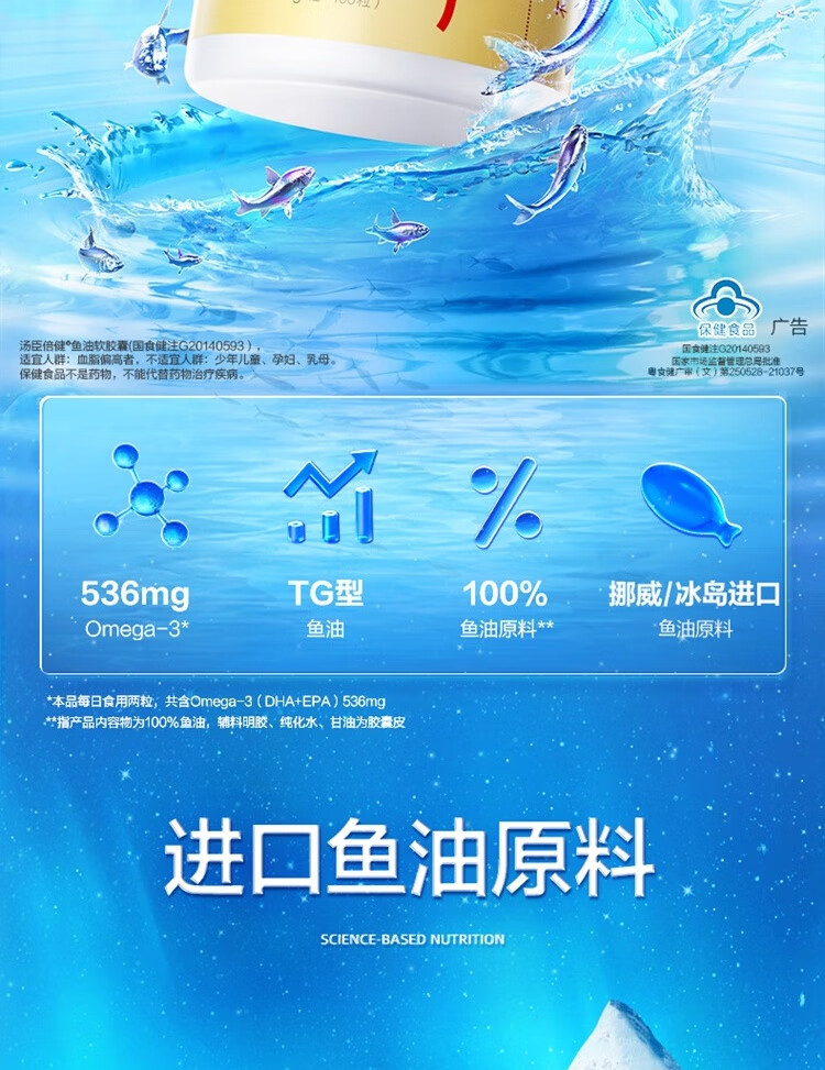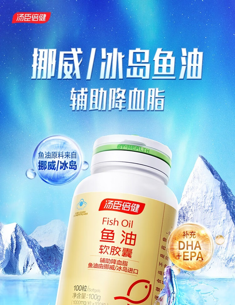 商品名称:汤臣倍健 挪威进口深海鱼油软胶囊1000mg*100粒 父亲节送礼成人中老年omega3含dha epa辅助降血脂