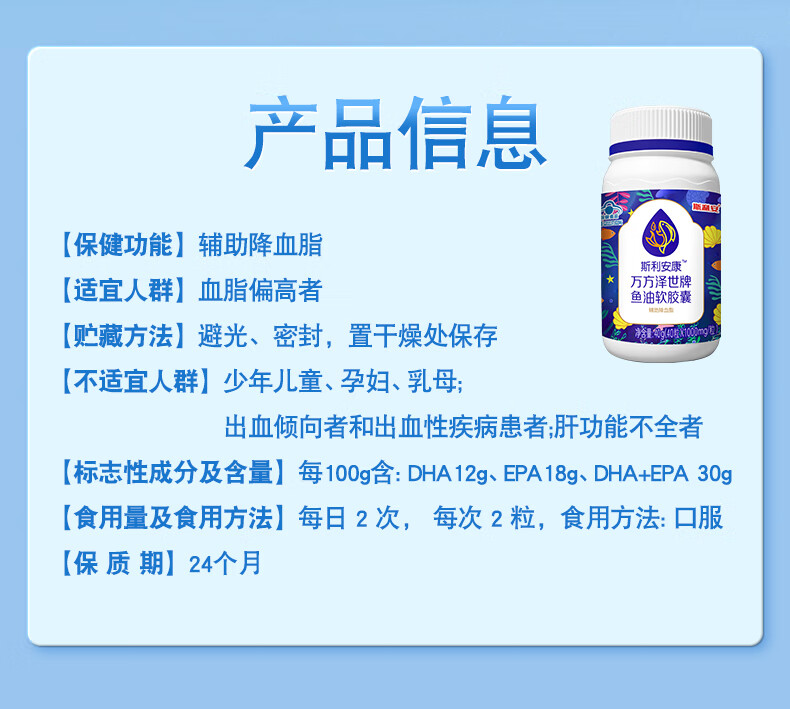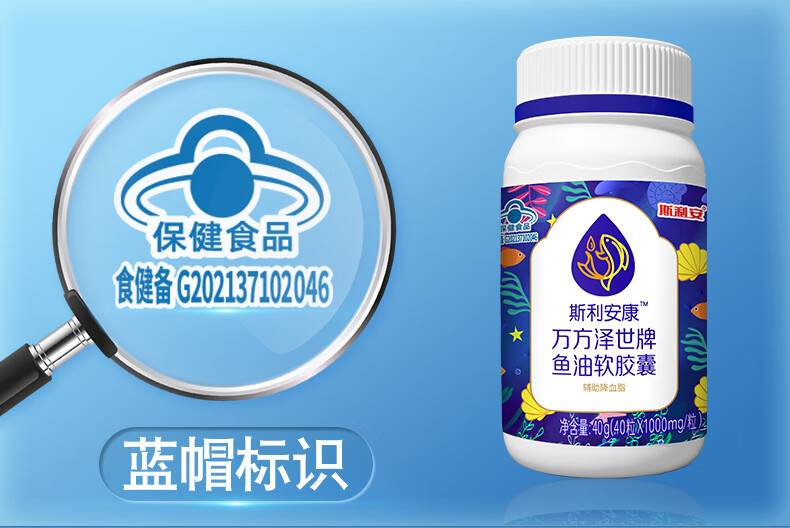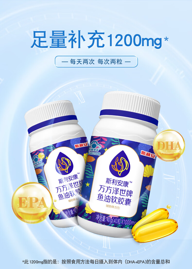 商品名称:斯利安无腥味高浓度深海鱼油软胶囊1000mg/粒×40 粒 /瓶DHA EPA呵护心眼脑成人中老年