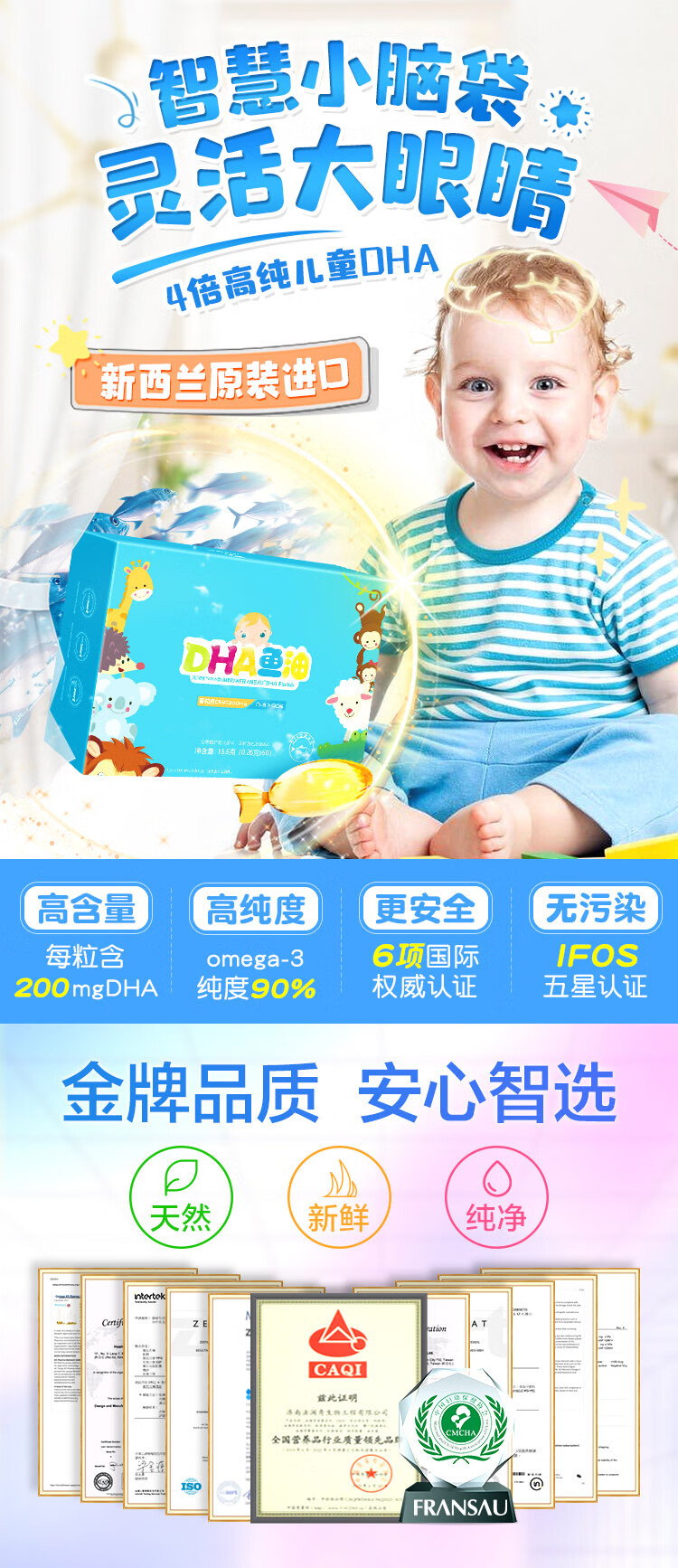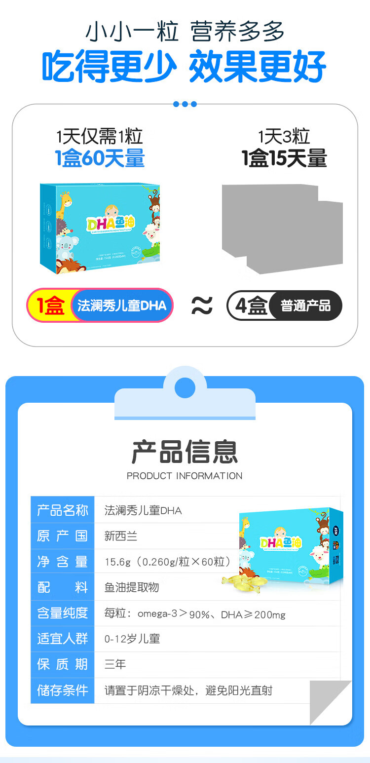 商品名称:法澜秀dha儿童婴幼儿新生宝宝德国KD鱼油软胶囊DHA新西兰进口 60粒/盒 1盒