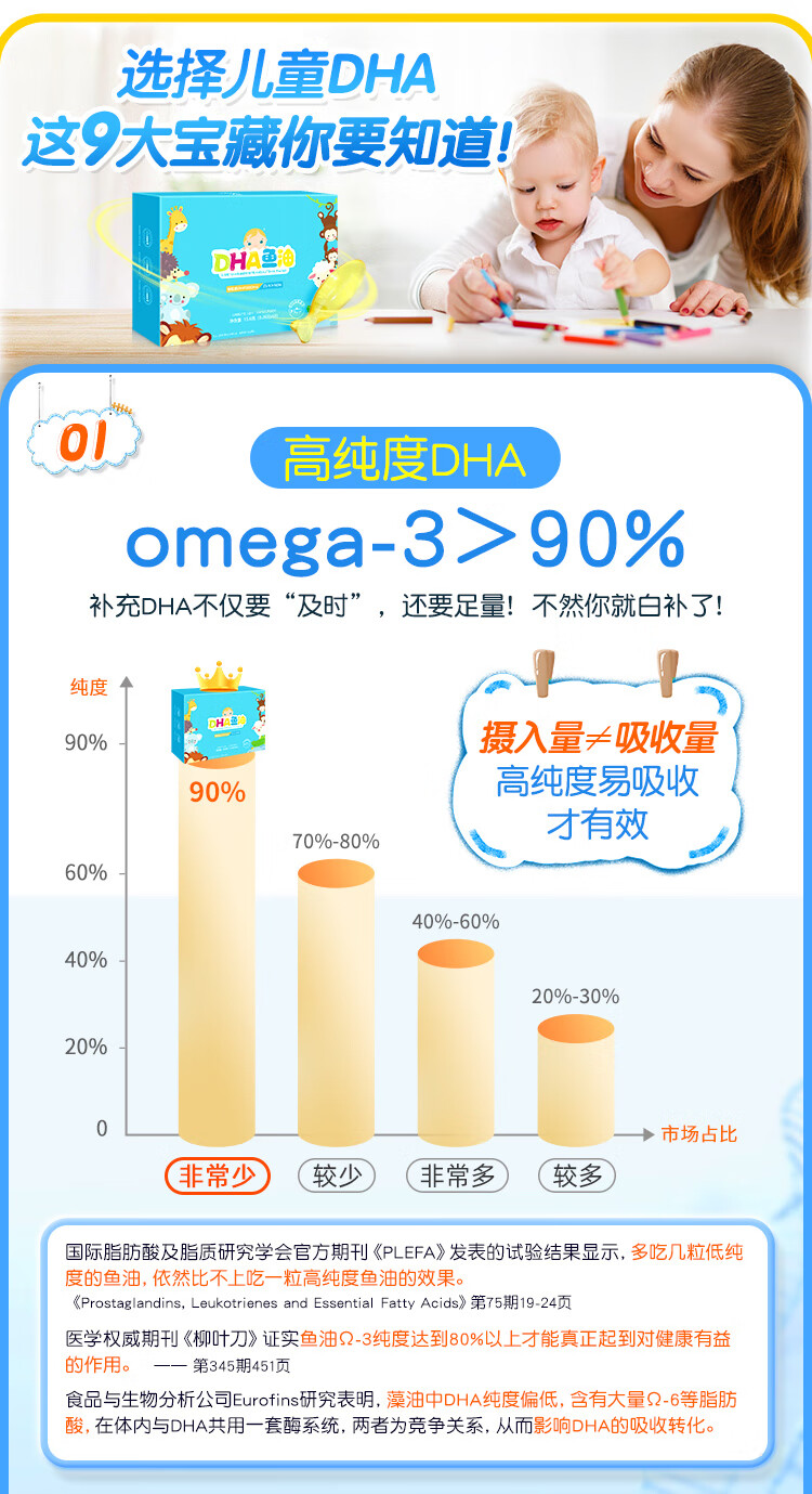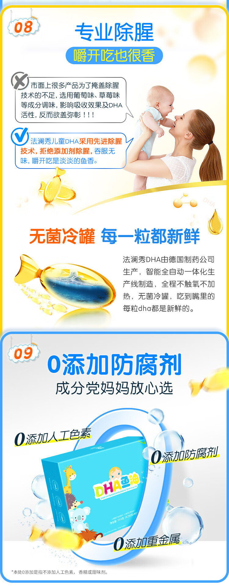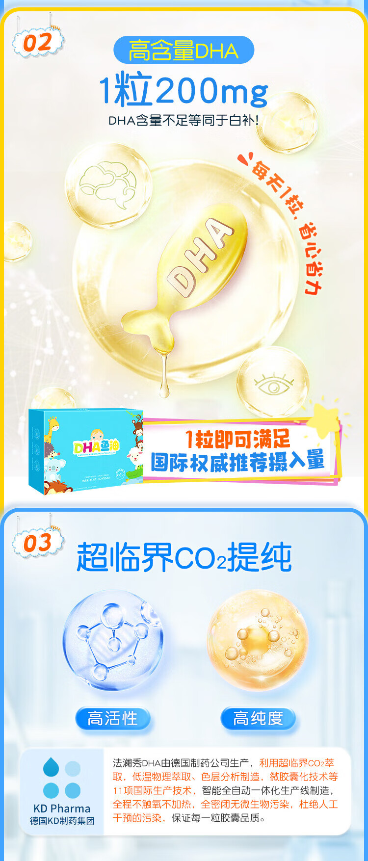法澜秀dha儿童婴幼儿新生宝宝德国KD鱼油软胶囊DHA新西兰进口 60粒/盒 1盒