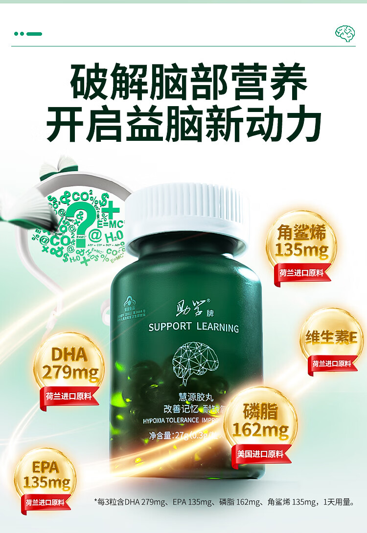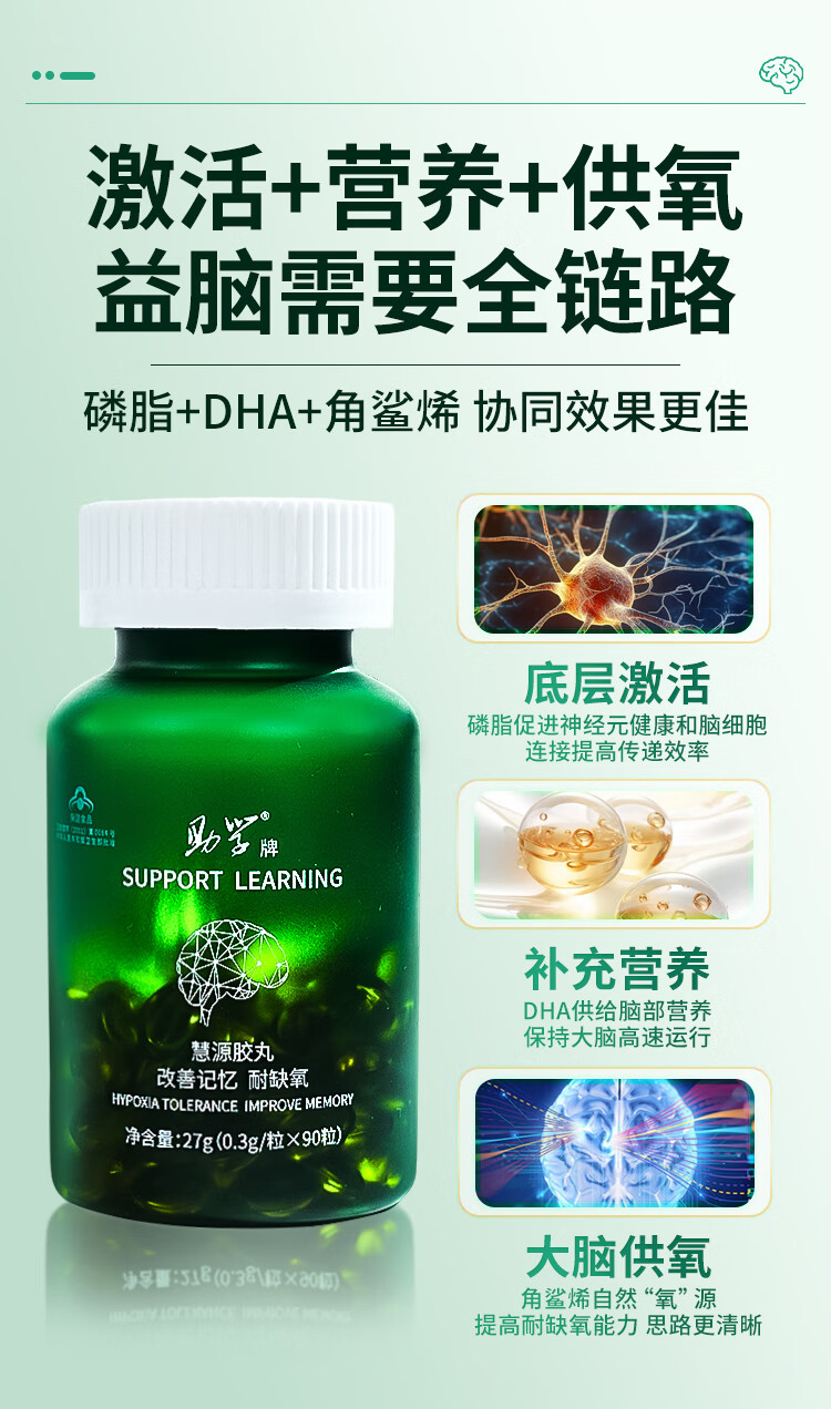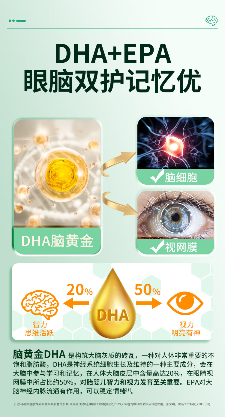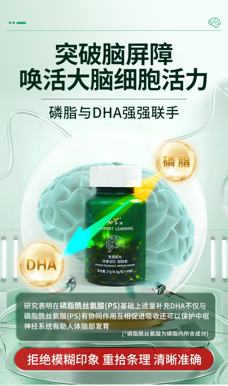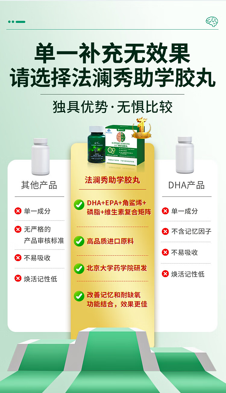 商品名称:法澜秀 dha学生补充脑黄金青少年6-18岁成人提高改善记忆力耐缺氧疲劳鱼油胶囊 1瓶(90粒)