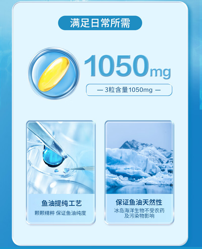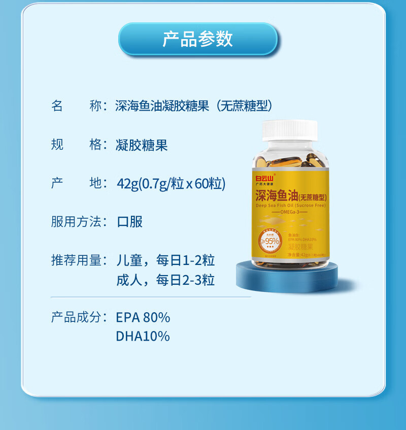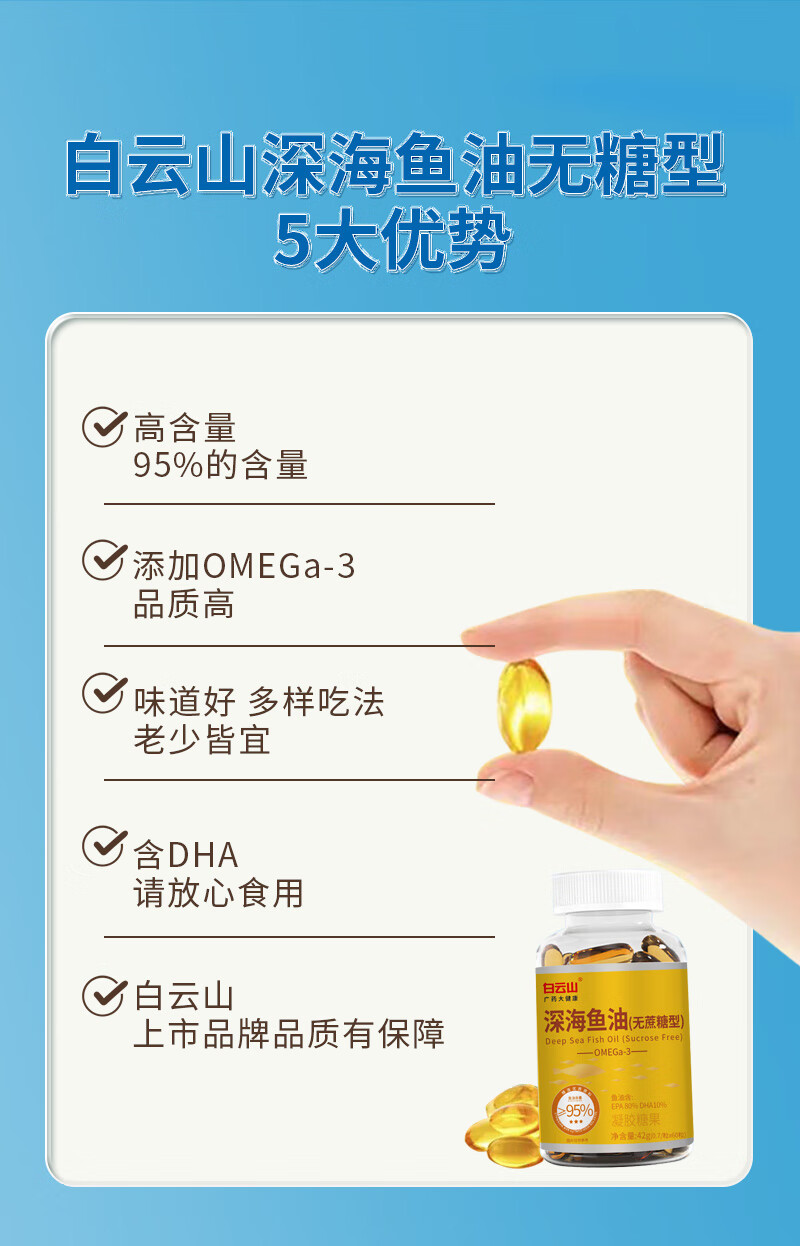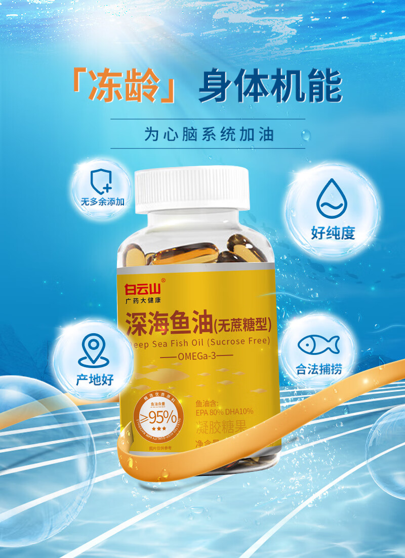 商品名称:白云山 鱼油胶囊 无蔗糖型 【3瓶装】omega-3软胶囊 含dha+epa 鱼肝油 成人中老年人深海鱼油180粒