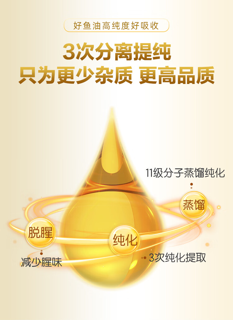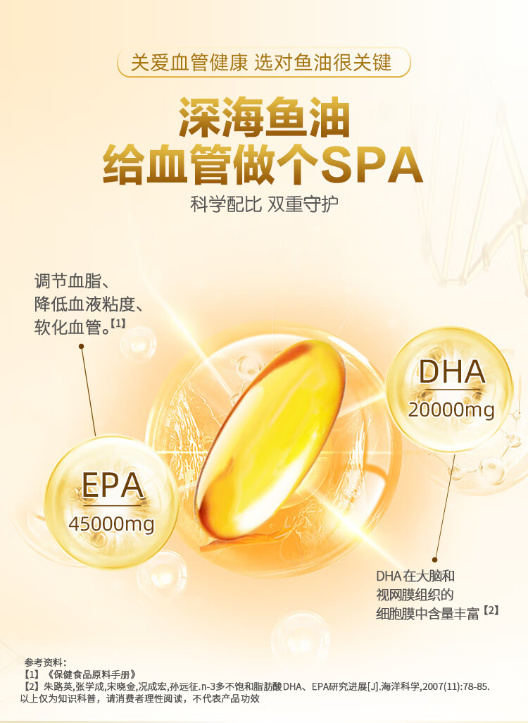 厂鱼油软胶囊深海鱼油1000mg/粒高含量Omega-3 65%高含量成人老人中老年辅助降血脂鱼肝油保健品60粒