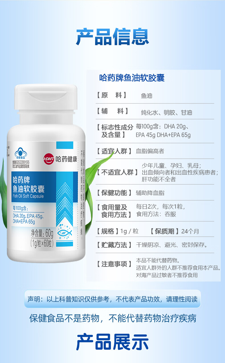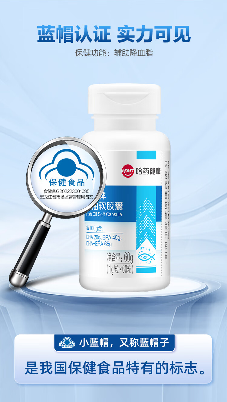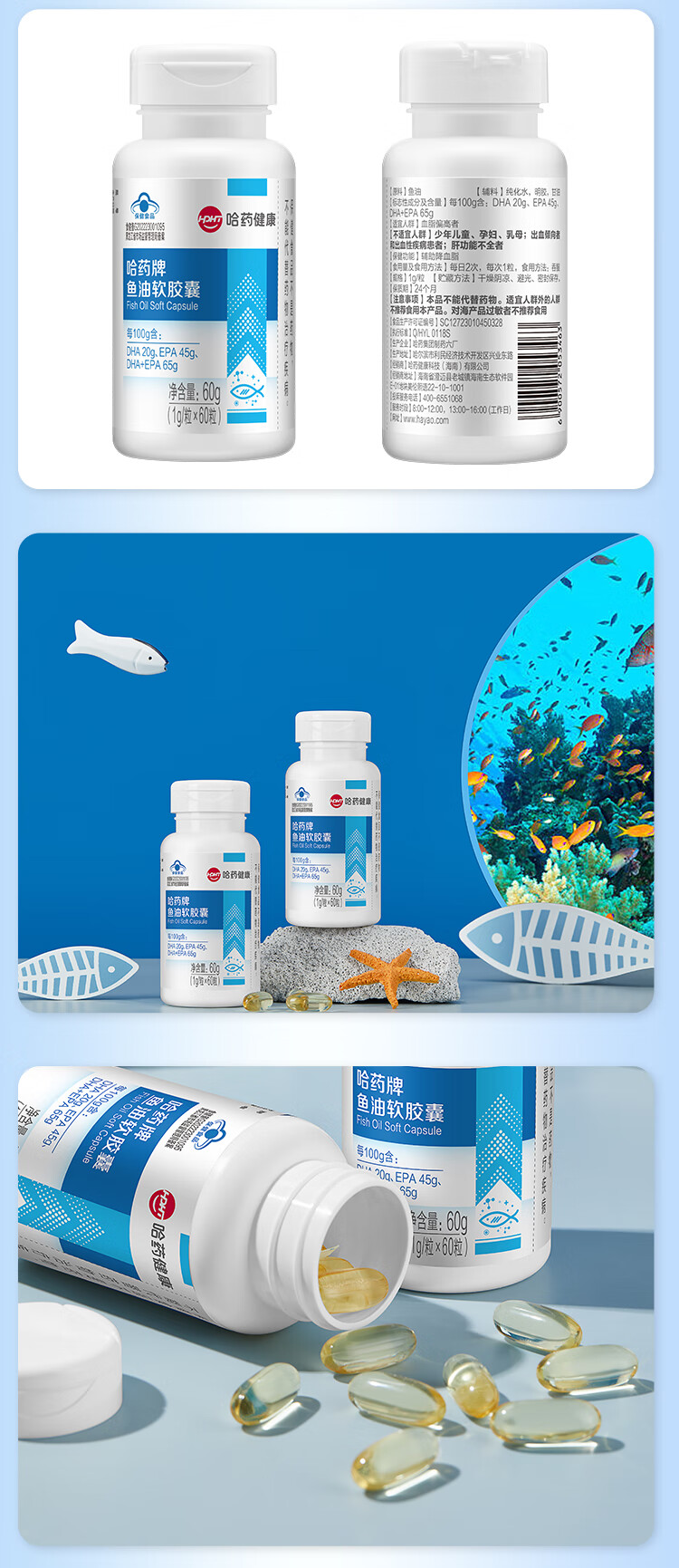 商品名称:厂鱼油软胶囊深海鱼油1000mg/粒高含量Omega-3 65%高含量成人老人中老年辅助降血脂鱼肝油保健品60粒