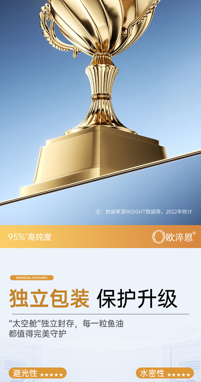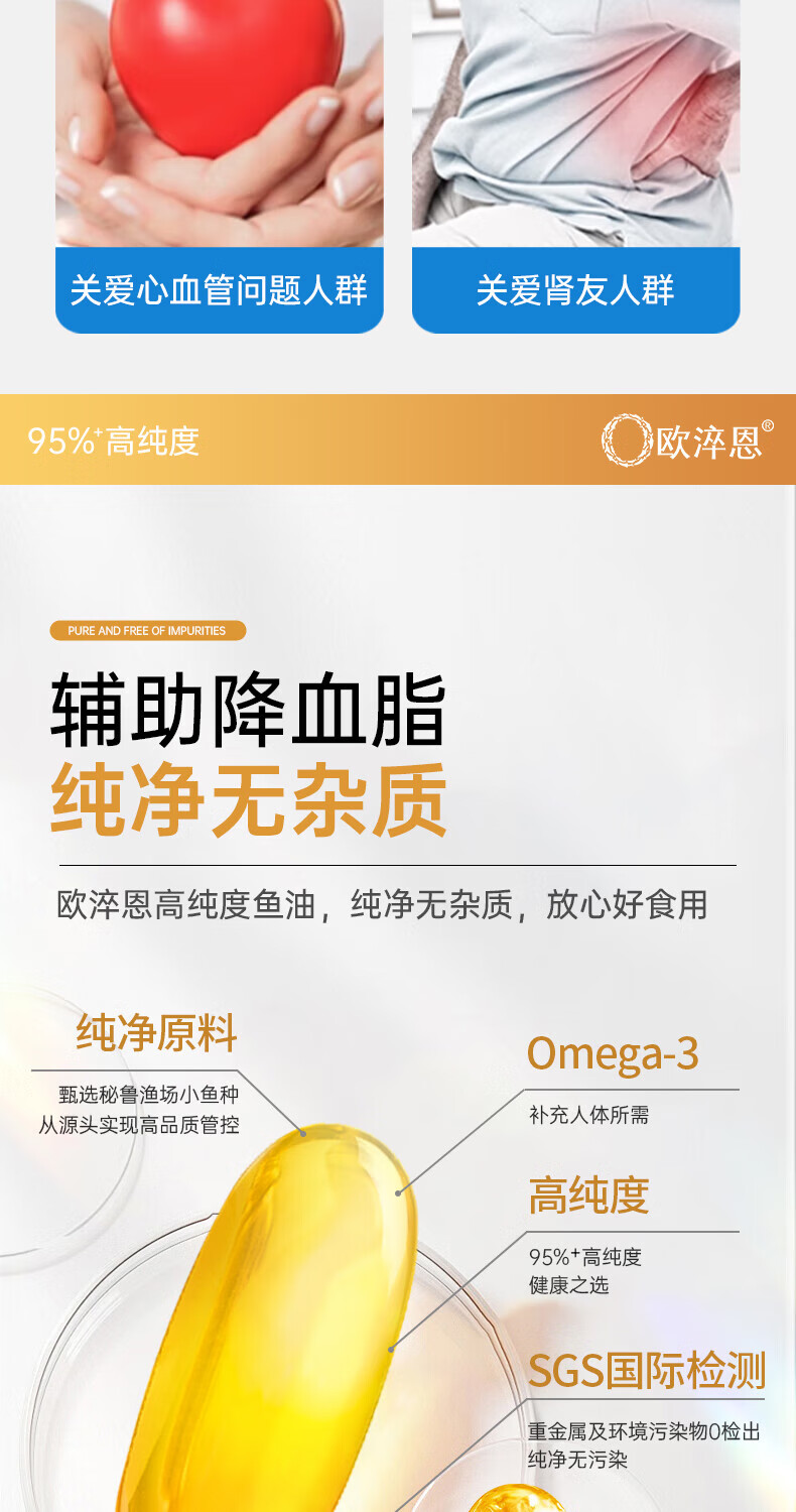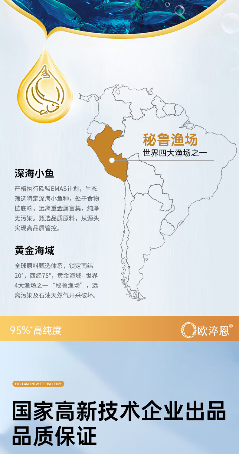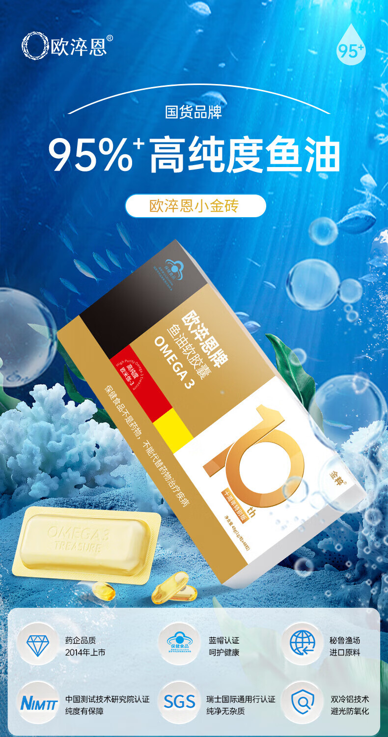 商品名称:欧淬恩 高纯度鱼油深海鱼油软胶囊48粒 中老年保健品辅助降血脂omega-3 1盒【95%纯度】