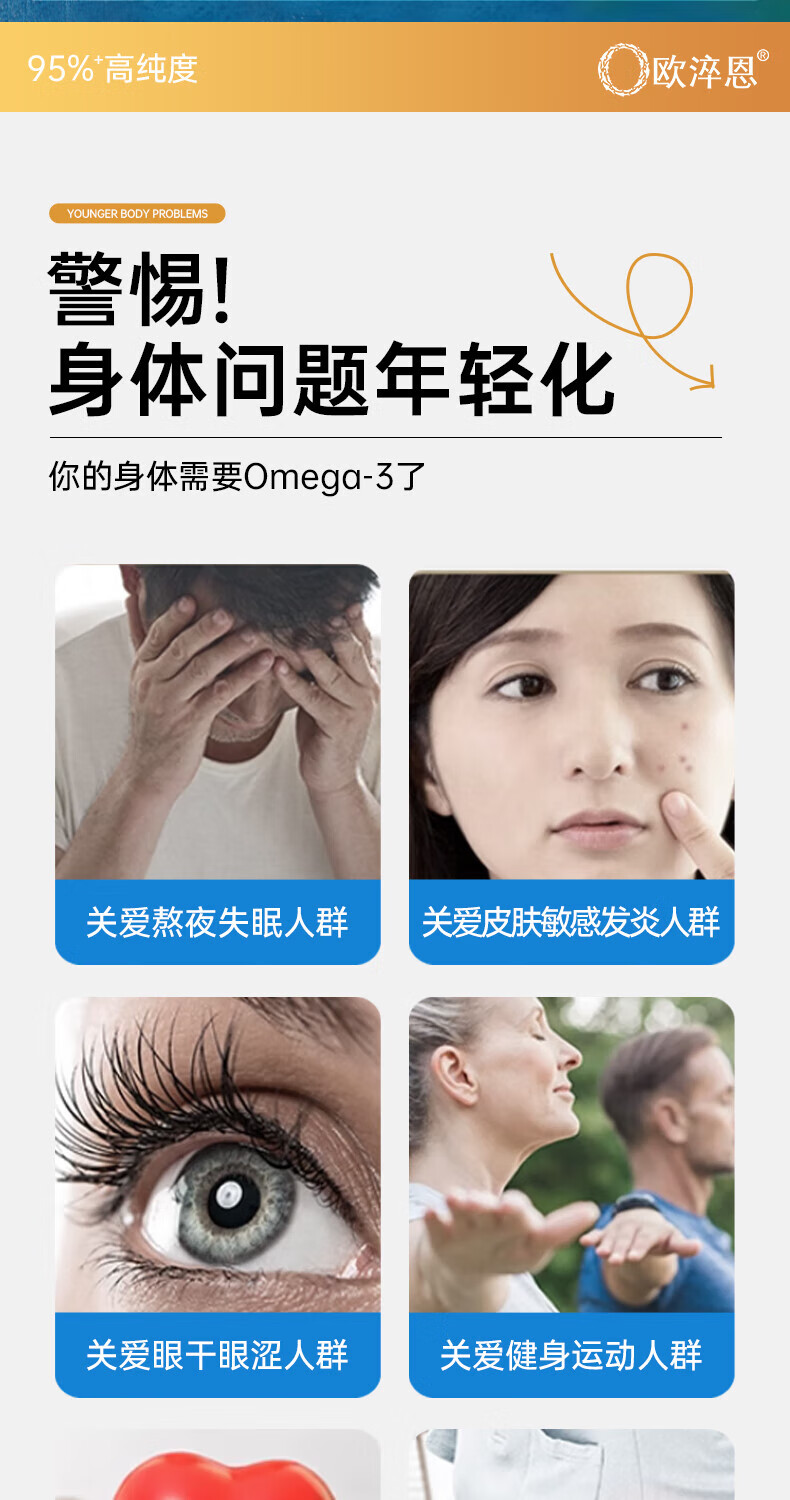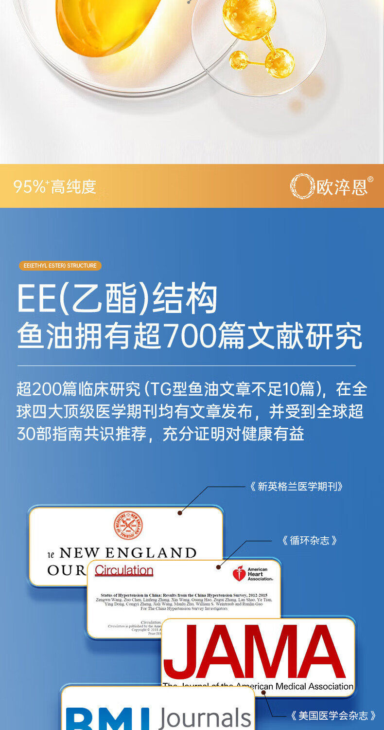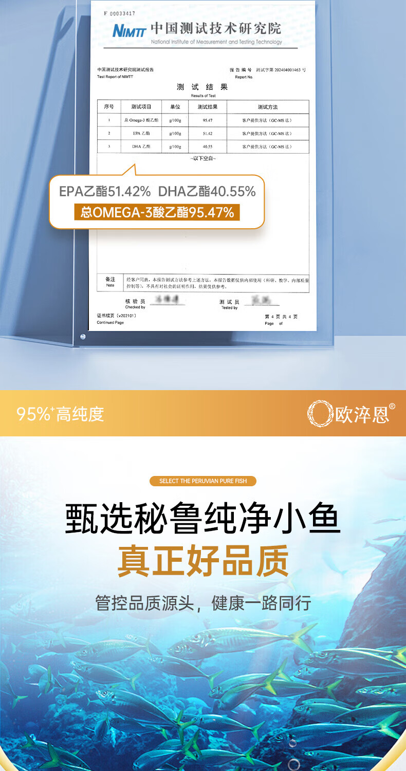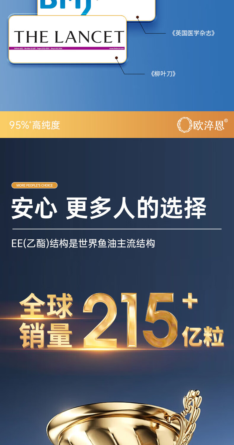 商品名称:欧淬恩 高纯度鱼油深海鱼油软胶囊48粒 中老年保健品辅助降血脂omega-3 1盒【95%纯度】