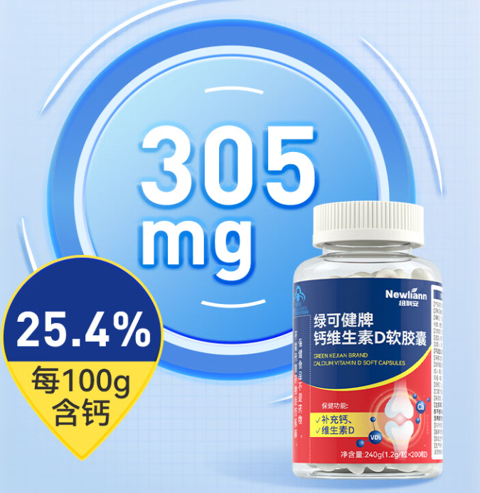 纽利安Newliann钙片 钙d 维生素d 钙D软胶囊 成人中老年人液体钙片 补钙 1.2g/粒*200粒